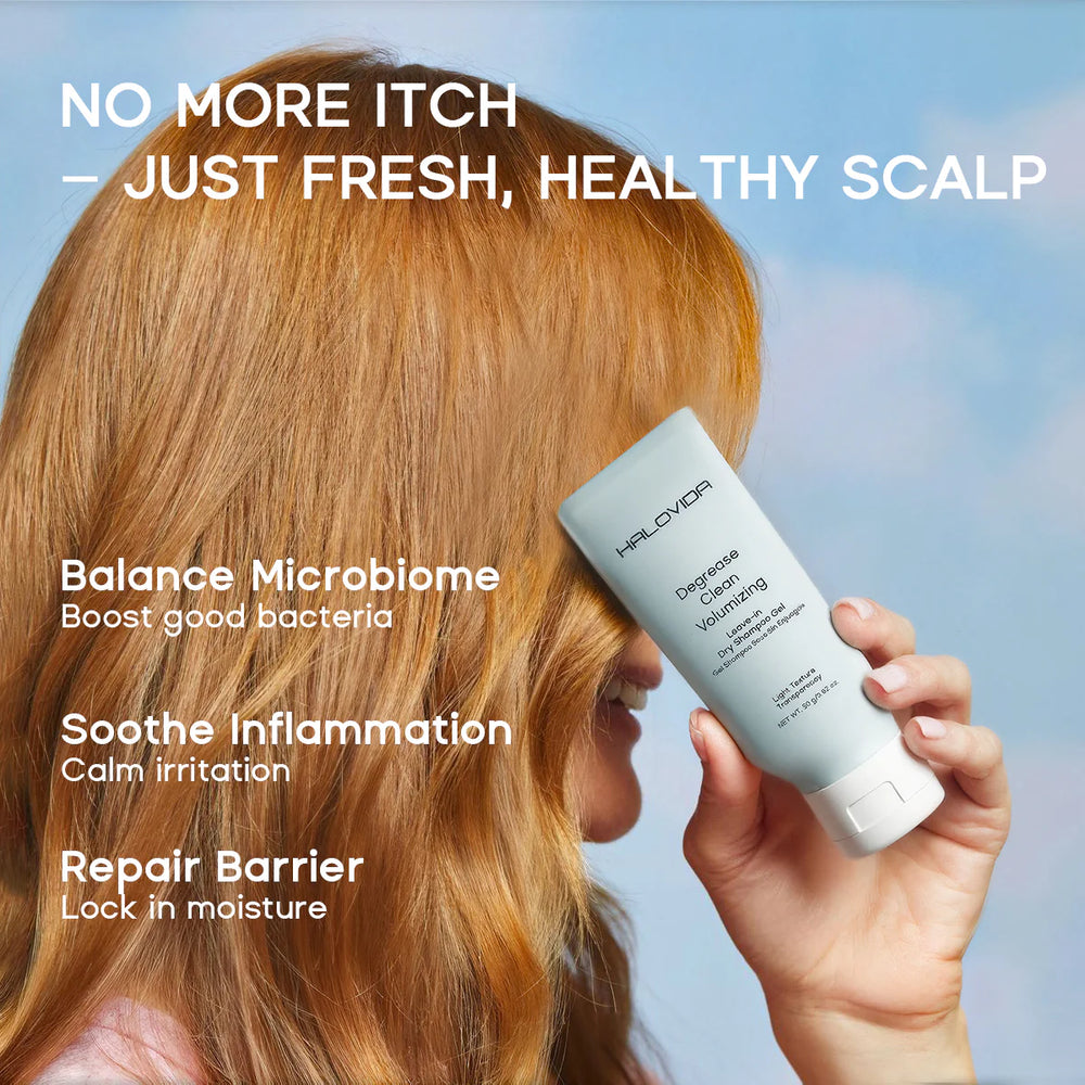 Experience a revolutionary gel formula that actually cleans your hair without the grit, itch, or white cast typical of traditional sprays.